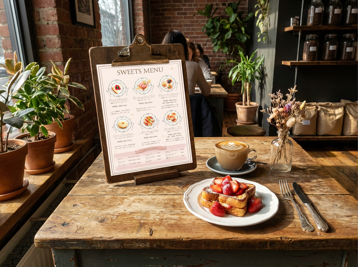 架空のカフェのメニュー表を作成しました